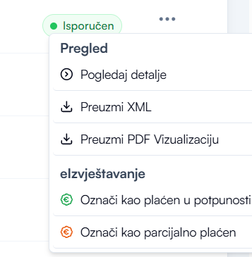 Klikom na … pored pojedinog e-računa otvara se izbornik s pripadajućim opcijama.
